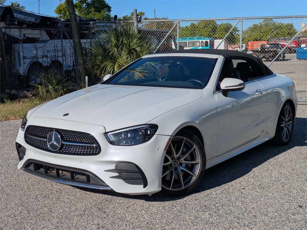 This 2023 Mercedes-Benz E 450 Cabriolet is proudly offered by Mercedes-Benz of Sarasota This Mercedes-Benz includes: ILLUMINATED DOOR SILLS W/MERCEDES-BENZ LETTERING AMG LINE Leather Steering Wheel Floor Mats WHEEL LOCKING BOLTS (PIO) Wheel Locks EXTERIOR LIGHTING PACKAGE Automatic Highbeams LED Headlights Headlights-Auto-Leveling AUGMENTED VIDEO FOR NAVIGATION Navigation System BLACK HEADLINER WHEELS: 19 Tires - Front Performance Aluminum Wheels Tires - Rear Performance MANUFAKTUR MOONLIGHT WHITE METALLIC NATURAL GRAIN BLACK ASH WOOD TRIM Woodgrain Interior Trim HEATED & VENTILATED FRONT SEATS Cooled Front Seat(s) Heated Front Seat(s) *Note - For third party subscriptions or services, please contact the dealer for more information.* Why does this vehicle look so great? The CARFAX report shows it's only been owned by one owner. Reliability is something you can count on when you purchase a Mercedes-Benz Certified vehicle like this E 450 Cabriolet . The E 450 Cabriolet is a well-built, yet compact and enjoyable ride that is unmatched by any other convertible on the road. With the ability to easily switch between having the top up or down, you'll be able to go about your weekday routine without feeling like you've sacrificed the weekend thrills. For those who are ready to drive something more than just a car, this E- Cabriolet will appeal to their idea of luxury and refinement. It's not often you find just the vehicle you are looking for AND with low mileage. This is your chance to take home a pre-owned and barely driven Mercedes-Benz E-Class. Added comfort with contemporary style is the leather interior to heighten the quality and craftsmanship for the E 450 Cabriolet . This vehicle comes with a navigation system. That doesn't mean you won't get lost. But it does mean you won't stay lost.
